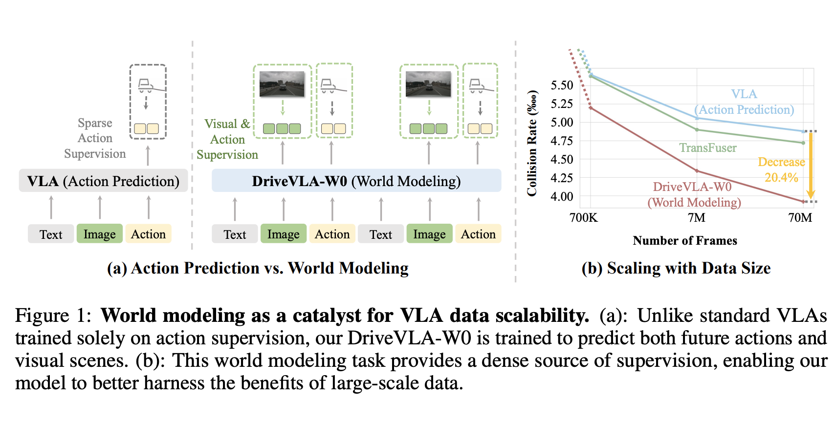 DriveVLA-W0: World Models Amplify Data Scaling Law in Autonomous Driving